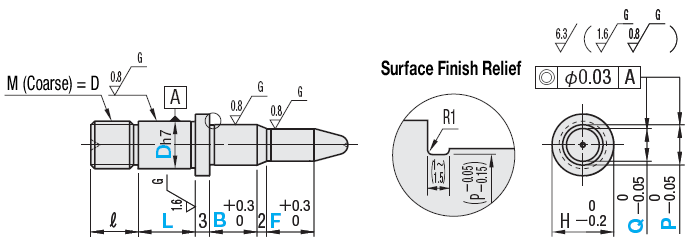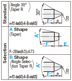 | Part Number | P 0.1mm Increment | Q 0.1mm Increment | F/B 1mm Increment | L Selection | A Selection | E (Shape A) 1mm Increment | ℓ | ℓ1 | ℓ1 | H | d | Applicable Set Screw | |||||||