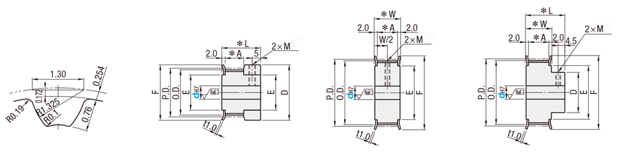 [ ! ] The position of the keyway and the phase of the teeth are not guaranteed.