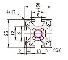 Aluminum Frame 5 Series/ Slot width 6/25x25mm.