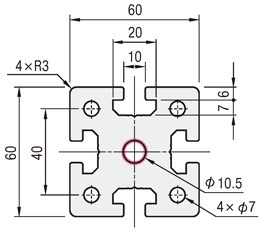 | > Counterbore Drilling | Specified position counterbored hole | Z8-XA○○ Z12-YA○○ | ![]() | This is an additional process to drill a counterbore hole (select from Z6, Z8, or Z12) at any position. Z6: Through hole φ6.5, counterbore φ11, Z8: Through hole φ9, counterbore φ14, Z12: Through hole φ13, counterbore φ19 . Up to five holes can be drilled in one direction. For Aluminum Frames with multiple rows of grooves on one surface, counterbore holes will be machined in all grooves. [ ! ] If you require more than six counterbore holes or to change the direction of the counterbore holes, non-standard product service . |